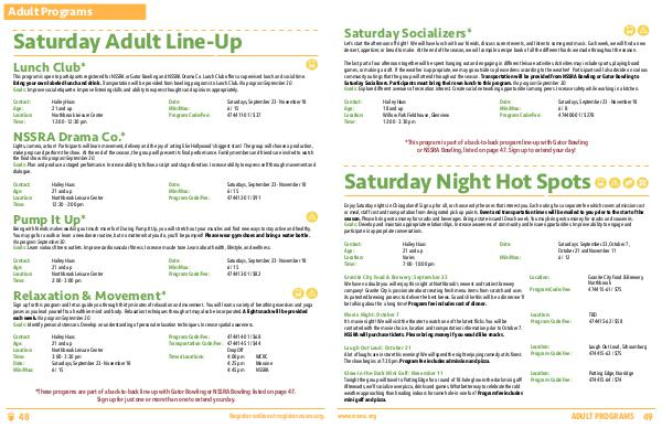 * These programs are part of a back-to-back line-up with Gator Bowling or NSSRA Bowling listed on page 47. Sign up for just one or more than one to extend your day.