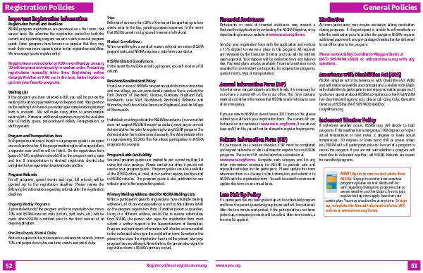 If inclement weather occurs, NSSRA may still decide to hold programs. If the weather turns dangerous( 100 degrees or higher actual temperature or heat index; 2 degrees or lower actual temperature,-30 degrees or lower wind chill or severe snow / ice), NSSRA will call participants prior to the start of a program to cancel the program. If you are not sure whether a program will meet due to inclement weather, call NSSRA. Refunds are issued for cancelled programs.