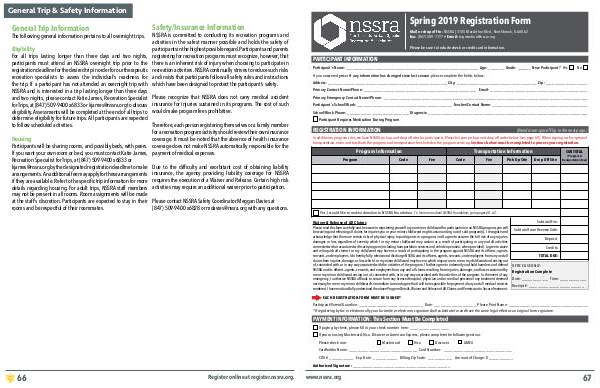 details regarding housing. For adult trips, NSSRA staff members activities may require an additional waiver prior to participation.