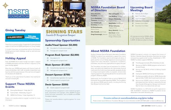 Over 150 NSSRA donors came through once again in support of NSSRA participants and their families in response to this year ’ s Holiday Appeal !