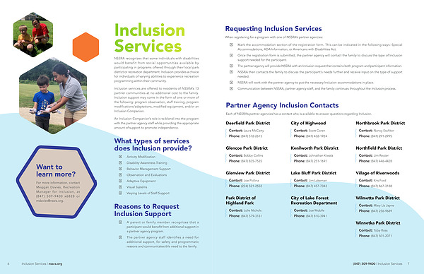 Each of NSSRA ’ s partner agencies has a contact who is available to answer questions regarding Inclusion .