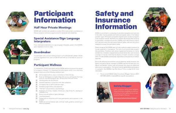 NSSRA is committed to conducting its recreation programs and activities in the safest manner possible and holds participants ' safety in the highest possible regard . Participants and parents registering for recreation programs must recognize , however , that there is an inherent risk of injury when choosing to participate in recreational activities . NSSRA continually strives to reduce such risks and insists that participants follow all safety rules and instructions designed to protect the participant ’ s safety .