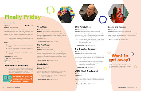 You don ' t want to miss out on this social scene , so grab your friends and join us for some great times . Sign up for all or choose only the ones that interest you . Each outing has a separate fee which covers the cost of admission , meals , staff , and transportation .