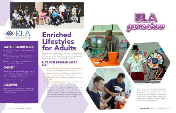 ELA is a year-round day program for individuals with disabilities who are 22 years of age and older . ELA was created to enhance the quality of life and offer well-rounded daytime program options for adults with disabilities while providing a flexible schedule for families .