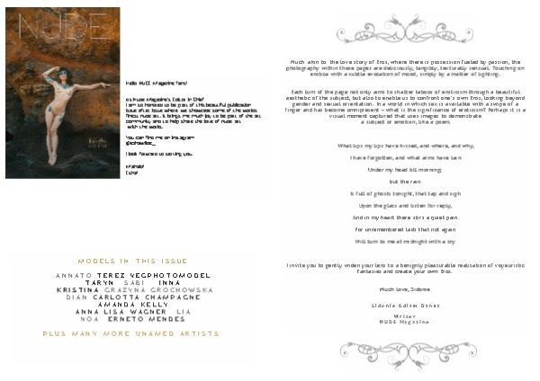 Much akin to the love story of Eros, where there is possession fueled by passion, the photography within these pages are deliciously, tangibly, texturally sensual. Touching on erotica with a subtle evocation of mood, simply by a matter of lighting.