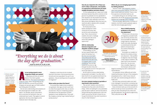 Why did you choose NUHS?“ NUHS teaches that true integration model. It’ s not leaning so hard to one side or the other. I liked that it was more academic and science-based, both the hard sciences and core chiropractic, non-pharmacologics, using surgical intervention when appropriate.
