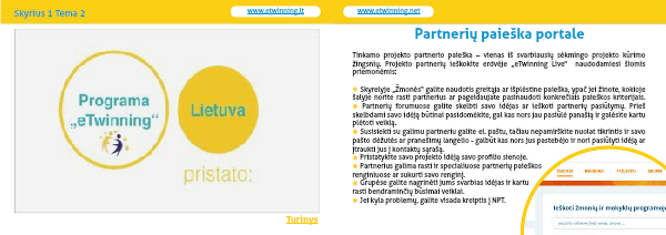 Tinkamo projekto partnerio paieška – vienas iš svarbiausių sėkmingo projekto kūrimo žingsnių. Projekto partnerių ieškokite erdvėje „eTwinning Live“ naudodamiesi šiomis priemonėmis: