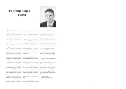 toiminnassa ovat tänä keväänä puhaltaneet muutoksen ja uudistuksen bofoorituulet. Ensimmäisenä uudistuksen koki jäsenlehtemme, jota en malta olla hehkuttamatta tässäkään numerossa. Tasokas ja hyvännäköinen