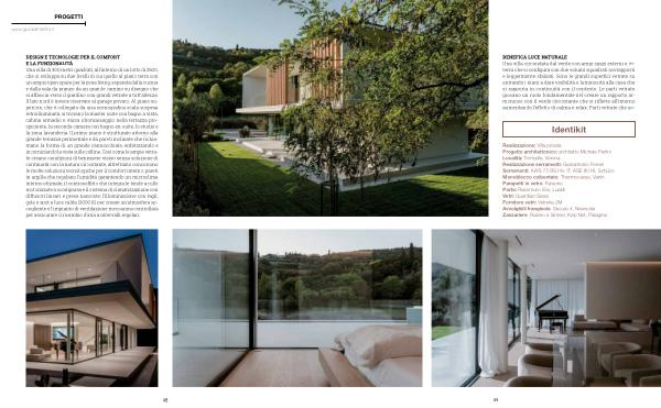 Realizzazione: Villa privata Progetto architettonico: architetto Michele Perlini Località: Torricelle, Verona Realizzazione serramenti: Gianantonio Ferrari Serramenti: AWS 75 BS HI + IT, ASE 80 HI, Schüco Monoblocco coibentato: Thermocasse, Vanin Parapetti in vetro: Faraone Porte: Rasomuro 55s, Lualdi Vetri: Guardian Glass Fornitore vetri: Vetreria 2M Avvolgibili frangisole: Secure 4, Newsolar Zanzariere: Rubino e Sintesi, Kzip Net, Palagina