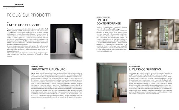 Presentata in anteprima ad Architect @ Work nel novembre 2024, Fluid Door rappresenta per AIP l’ essenza più autentica della propria capacità progettuale. Frutto di una collaborazione con l’ architetto Simone Micheli, questa porta rivoluzionaria ridefinisce il concetto stesso di elemento d’ arredo, trasformandolo in un oggetto di culto, capace di superare gli stereotipi estetici e funzionali tradizionalmente associati alle porte da interni. Caratterizzata da linee morbide e continue che si fondono con il battiscopa, Fluid Door elimina i confini visivi tra i vari elementi strutturali, dando vita a una soluzione dal forte impatto scenografico e dalla leggerezza visiva. La porta, completamente laccata, si distingue per gli angoli superiori arrotondati e per un coprifilo complanare realizzato in un unico elemento, che segue fedelmente il profilo dell’ anta e si raccorda con eleganza al battiscopa. Attualmente non ancora disponibile sul mercato, questa porta rappresenta una promessa concreta di innovazione nel mondo del design d’ interni.