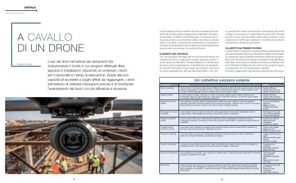 IL SEGRETO DEL SUCCESSO Uno dei principali vantaggi dell’ uso dei droni nel settore del serramento è la loro capacità di eseguire ispezioni e rilievi in modo rapido ed efficiente. Tradizionalmente, il rilevamento di misure per la progettazione e l’ installazione di serramenti richiede l’ intervento di personale specializzato, che deve accedere manualmente alle facciate degli edifici. Con i dro- ni, questa fase viene notevolmente velocizzata, riducendo i tempi di esecuzione e migliorando la precisione dei dati raccolti. Ci sono poi gli aspetti relativi alla sicurezza: i droni consentono di effettuare ispezioni e controlli senza esporre il personale a situazioni pericolose.