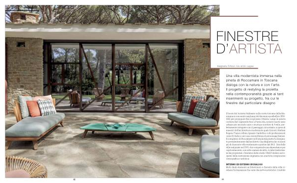Una villa modernista immersa nella pineta di Roccamare in Toscana dialoga con la natura e con l’ arte. Il progetto di restyling la proietta nella contemporaneità grazie ai tanti inserimenti su progetto, fra cui le finestre dal particolare disegno