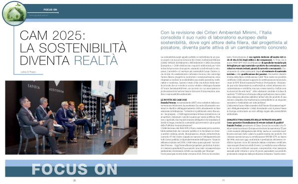 LE NOVITÀ DEI CAM 2025 Daniela Petrone, vicepresidente ANIT e tra i redattori della nuova versione del decreto, ha moderato l’ incontro illustrando contenuti e obiettivi dell’ aggiornamento 2025, attualmente in fase avanzata di definizione.“ L’ obiettivo è pubblicarlo entro fine anno- ha spiegato,- i CAM rappresentano la base normativa su cui progettare, realizzare e gestire qualunque opera pubblica. Non sono capitolati, ma requisiti minimi obbligatori che innalzano il livello di legge, rendendo sostenibili gli interventi e gli acquisti della Pubblica Amministrazione”. I CAM derivano dal PAN-GPP, il Piano nazionale per la sostenibilità ambientale dei consumi pubblici e si declinano in diversi ambiti: edilizia, arredi, illuminazione, strade, infrastrutture. L’ articolo 57 del Codice Appalti ne sancisce l’ obbligatorietà per tutti i lavori pubblici, indipendentemente dall’ importo.“ Quando abbiamo iniziato nel 2008, i CAM erano quasi ignorati- ha ricordato Petrone.- Oggi l’ intera filiera( progettisti, produttori, fornitori e stazioni appaltanti) ha acquisito una reale consapevolezza ambientale, diventando di fatto un modello per l’ Europa”. Tra le principali novità della versione 2025, Petrone ha evidenziato: l’ introduzione di un capitolo dedicato all’ analisi del ciclo di vita( LCA) degli edifici e dei componenti, in linea con il nuovo PAN-GPP 2023, la definizione di specifiche tecniche più dettagliate per ogni materiale e prodotto da costruzione, nuovi criteri su vetrate isolanti, giunti di raccordo e serramenti e l’ inserimento di criteri premianti legati al contenuto di materiale riciclato e alla qualificazione dei posatori. Ha inoltre chiarito il tema della falsa certificazione CAM:“ Non esiste un prodotto certificato CAM, senza il supporto di certificazioni riconosciute, come le EPD( Environmental Product Declaration). Un’ azienda può solo dimostrare la conformità ai criteri attraverso documentazione e verifiche, ma non creare marchi o bollini non riconosciuti da enti terzi”. Altro elemento centrale è la fase di cantiere:“ I CAM non si fermano alla progettazione, ma si estendono alla posa, alla tracciabilità e al fine vita dei prodotti. È una visione completa che trasforma la sostenibilità in un requisito operativo e verificabile per tutta la filiera”. L’ Italia resta l’ unico Stato membro dell’ Unione Europea ad applicare obbligatoriamente i CAM, diventando così il primo Paese in Europa a introdurre un vero obbligo legato alla sostenibilità ambientale.