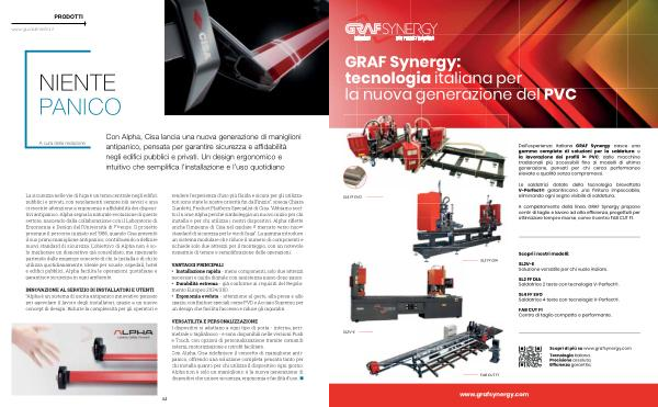 rendere l’ esperienza d’ uso più fluida e sicura per gli utilizzatori sono state le nostre priorità fin dall’ inizio”, spiega Chiara Ciardetti, Product Platform Specialist di Cisa.“ Abbiamo scelto il nome Alpha perché simboleggia un nuovo inizio per chi installa e per chi utilizza i nostri dispositivi. Alpha riflette anche l’ impegno di Cisa nel guidare il mercato verso nuovi standard di sicurezza per le vie di fuga”. La gamma introduce un sistema modulare che riduce il numero di componenti e richiede solo due attrezzi per il montaggio, con un notevole risparmio di tempo e semplificazione delle operazioni.