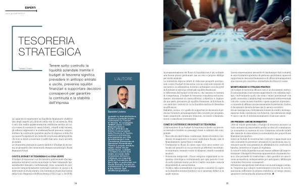 UN PRESIDIO ANCHE NORMATIVO Oltre al valore gestionale, il budget di tesoreria assume un ruolo sempre più importante anche in ottica di compliance. La normativa in materia di crisi d’ impresa richiede infatti alle aziende di dimostrare la sostenibilità dei propri flussi finanziari prospettici. Avere un budget di tesoreria ben costruito e aggiornato non solo consente di prevenire situazioni di insolvenza, ma costituisce anche una garanzia di affidabilità nei confronti di banche, investitori e organi di vigilanza. Il controllo della liquidità non può essere affidato all’ improvvisazione. Il budget di tesoreria rappresenta lo strumento tecnico che permette di trasformare i dati operativi in una visione prospettica, indispensabile per anticipare i fabbisogni e prendere decisioni consapevoli. Attraverso una gestione metodica e un monitoraggio costante, l’ impresa può ridurre notevolmente il rischio di crisi finanziaria, rafforzare la propria stabilità e, al tempo stesso, garantire continuità alla propria attività.