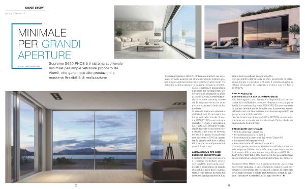 Supreme S650 PHOS è il sistema scorrevole minimale per ampie vetrature proposto da Alumil, che garantisce alte prestazioni e massima flessibilità di realizzazione