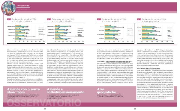 ANDAMENTO DELLE VENDITE E DIMENSIONE AZIENDALE Nell ’ incrociare i dati sull ’ andamento delle vendite 2024 con la dimensione delle aziende , valutata in termini di numero di addetti , si evidenzia come queste abbiano conosciuto andamenti differenti . Le aziende fino a tre addetti hanno indicato in prevalenza di aver venduto leggermente meno rispetto all ’ anno precedente con il 35,7 % delle risposte . Le aziende dai tre ai sette addetti hanno indicato in prevalenza di aver conosciuto un 2024 di vendite stabili rispetto all ’ anno precedente , con il 28,4 % delle risposte . Le aziende dai sette ai quindici addetti hanno indicato in prevalenza di essere cresciute leggermente con il 29,6 % delle risposte . Le aziende con più di quindici addetti sono quelle per le quali sono prevalse le risposte che hanno indicato una diminuzione delle vendite , ovvero 33,7 % di leggera diminuzione e 22,5 % di forte diminuzione ( tabella 7 ). Anche in questo caso i risultati sono in controtendenza rispetto a quelli degli Osservatori degli anni precedenti . Mai si era rilevato che le aziende più strutturate lamentassero andamenti meno soddisfacenti rispetto alle aziende meno strutturate . Va però ricordato che si tratta di un dato relativo , frutto di un confronto con l ’ andamento degli anni precedenti in cui sono state proprio le aziende di maggiori dimensioni a trarre , negli anni scorsi , il maggior beneficio dalla presenza del superbonus .