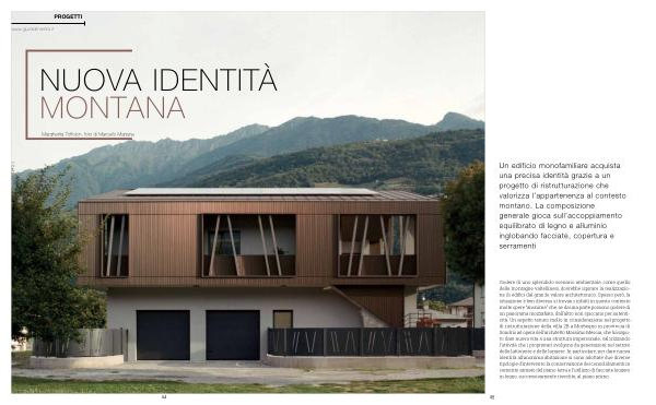 Un edificio monofamiliare acquista una precisa identità grazie a un progetto di ristrutturazione che valorizza l ’ appartenenza al contesto montano . La composizione generale gioca sull ’ accoppiamento equilibrato di legno e alluminio inglobando facciate , copertura e serramenti