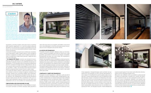 Ligure al quinto piano fronte mare sarà sollecitato diversamente da uno a Bologna al piano terra . Nel nostro caso , abbiamo scelto un modello a catena perché al cliente non piacevano i modelli con i cavetti , che avrebbero consentito di fare un unico frangisole anche nelle vetrate da 4 metri di larghezza . Abbiamo così studiato una piccola colonna che servisse come sostegno alle guide dei due frangisole e l ’ abbiamo posizionata di fronte al montante centrale delle vetrate scorrevoli . In questo modo , abbiamo risolto il limite dimensionale senza avere un grande impatto estetico nel risultato finale .