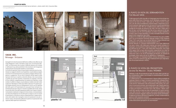 “ Abbiamo scelto dei serramenti in legno di rovere oliato , perché creano un ’ atmosfera calda e con il tempo si caratterizzano di una delicata patina naturale . La collaborazione con il serramentista è dipesa dalla possibilità di realizzare finestre in legno su misura , garantendo un ’ ampia flessibilità di dimensioni e sistemi . In questo modo abbiamo potuto fare scelte diverse adattandoci alla mutevolezza della pietra , che costituisce la muratura portante , personalizzando ogni singola apertura . Ci piace il contrasto tra vetri fissi , molto fini , quasi invisibili , e i telai in legno più materici . I vetri fissi sono a filo esterno , dando continuità alla superficie della facciata ed espandendo lo spazio interno , come delle nicchie . I telai in legno sono posati parzialmente nelle mazzette esistenti originali ( camere ), ma spesso anche direttamente applicati sul muro all ’ interno ( soggiorno , cucina ), sottolineando lo spessore delle mazzette esistenti . Così il muro mantiene la sua forza e la vista delle finestre varia a seconda delle diverse prospettive di osservazione .”