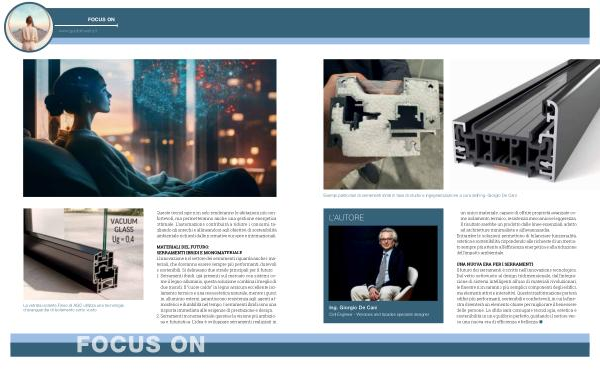 UNA NUOVA ERA PER I SERRAMENTI Il futuro dei serramenti è scritto nell ’ innovazione tecnologica . Dal vetro sottovuoto al design tridimensionale , dall ’ integrazione di sistemi intelligenti all ’ uso di materiali rivoluzionari , le finestre non saranno più semplici componenti degli edifici , ma elementi attivi e interattivi . Questa trasformazione porterà edifici più performanti , sostenibili e confortevoli , in cui la finestra diventerà un elemento chiave per migliorare il benessere delle persone . La sfida sarà coniugare tecnologia , estetica e sostenibilità in un equilibrio perfetto , guidando il settore verso una nuova era di efficienza e bellezza .