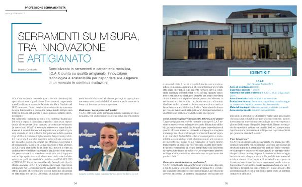 I. C. A. F. è un’ azienda con sede a San Giovanni Teatino( CH), specializzata nella produzione di serramenti, carpenteria metallica leggera, pesante e facciate ventilate. Fondata nel 2002, nasce con l’ obiettivo di offrire soluzioni che uniscono design, funzionalità e durabilità, mantenendo sempre una forte tradizione artigianale e uno sguardo costante all’ innovazione. Fin dall’ inizio, l’ azienda ha puntato su materiali di alta qualità e sulla capacità di realizzare prodotti su misura, rispondendo alle esigenze di un mercato in continua evoluzione. La crescita di I. C. A. F. è avvenuta attraverso tappe fondamentali: il consolidamento di rapporti con progettisti, privati, aziende ed enti pubblici; l’ ampliamento della gamma di prodotti; e il costante miglioramento dei processi produttivi. L’ azienda ha anche investito in tecnologie avanzate, per garantire soluzioni sempre più efficienti, sostenibili e all’ avanguardia. Guidata da Camillo Saraullo e Italo Leonzio, I. C. A. F. è oggi composta da un team di 21 addetti e conta su un fatturato consolidato superiore ai 3 milioni di euro annui. L’ organizzazione è solida e ben strutturata, con il supporto anche di progettisti esterni, e lavora secondo standard elevati come quelli richiesti dalle certificazioni ISO 9001:2015 e EN 1090-2 / 3. Come racconta Camillo Saraullo, ciò che distingue davvero I. C. A. F. è l’ attenzione ai dettagli, l’ approccio artigianale ma tecnologicamente avanzato e la capacità di offrire prodotti che coniugano design moderno, sicurezza ed efficienza energetica. L’ obiettivo principale dell’ azienda resta la soddisfazione del cliente, perseguita ogni giorno attraverso soluzioni affidabili, durevoli e perfettamente in linea con le esigenze contemporanee.