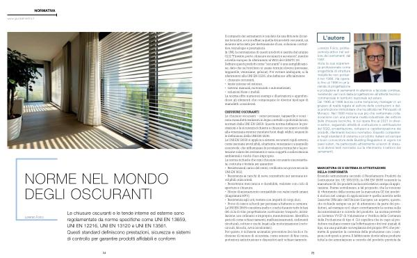 Le chiusure oscuranti e le tende interne ed esterne sono regolamentate da norme specifiche come UNI EN 13659, UNI EN 12216, UNI EN 13120 e UNI EN 13561. Questi standard definiscono prestazioni, sicurezza e sistemi di controllo per garantire prodotti affidabili e conformi