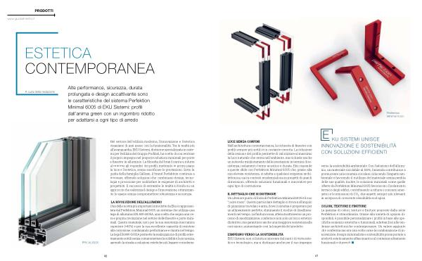 Alte performance , sicurezza , durata prolungata e design accattivante sono le caratteristiche del sistema Perfektion Minimal 6005 di EKU Sistemi : profili dall ’ anima green con un ingombro ridotto per adattarsi a ogni tipo di arredo