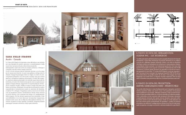 La Casa sullo Stagno è progettata come abitazione secondaria per una famiglia di quattro persone, a completamento della casa vera e propria situata sulla stessa proprietà. Immaginata come una sorta di scrigno prezioso, il design è compatto ma allo stesso tempo lussuoso. A est si trova un’ area salotto interrata intorno a un focolare per le serate più fresche. A nord, una galleria collega tutte le stanze e funge da passaggio verso lo stagno. A ovest c’ è un’ a- rea pranzo all’ aperto con otto posti a sedere che può essere aperta e collegata al soggiorno principale. Il livello del soppalco ospita la camera principale e si estende sopra l’ area salotto interrata, in modo che l’ intera zona giorno sia occupata da uno spazio a doppia altezza. Supportato su una fondazione di blocchi di cemento isolati, l’ edificio scava il livello del piano più basso nel terreno. Illuminato da una fascia di finestre a nastro sopraelevate, il seminterrato ospita la camerata dei bambini, il salotto TV e il bagno. Progettata come un incrocio di vedute con un perimetro poroso, l’ architettura stessa viene vissuta in modo diverso con il passare del tempo e il cambiamento delle stagioni. Per far entrare quanta più luce possibile, il lato sud dell’ edificio è in vetro fisso per la massima trasparenza, mentre il lato nord, che si affaccia sulla galleria esterna, è rivestito di pareti di vetro apribili, invitando l’ impressionante paesaggio naturale all’ interno degli spazi abitativi.