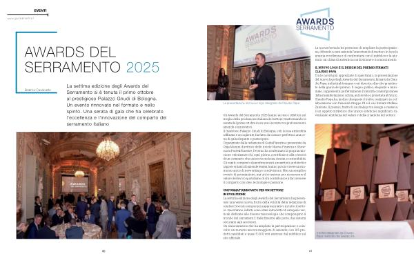 Gli Awards del Serramento 2025 hanno acceso i riflettori sul meglio della produzione italiana del settore, trasformando la serata del primo ottobre in un vero incontro tra professionisti, aziende e innovatori. Il maestoso Palazzo Gnudi di Bologna, con la sua atmosfera raffinata e accogliente, ha fatto da cornice perfetta a una cena di gala elegante e partecipata. Organizzato dalla redazione di GuidaFinestra e presentato da Olga Munini direttrice delle riviste Nuova Finestra e Showroom Porte & Finestre, l’ evento ha confermato la propria missione: valorizzare chi, ogni giorno, contribuisce alla crescita di un comparto che unisce tecnologia, design e sostenibilità. Gli ospiti, composto da professionisti, progettisti, architetti e rappresentanti di aziende leader, hanno potuto vivere un momento unico di networking e condivisione. Non un semplice evento di premiazione, ma un’ occasione per riconoscere il valore del lavoro quotidiano di chi contribuisce a far crescere il comparto con idee, tecnologie e passione.