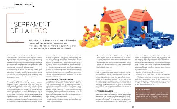 APPLICAZIONI AL SETTORE DEI SERRAMENTI In tutti questi casi, la filosofia progettuale ha la stessa base e cioè progettazione degli edifici non come blocchi unici e statici, ma come sistemi dinamici e componibili, ma soprattutto adattabili ai contesti e alle esigenze del paese o del territorio. Ma può il mondo del serramento applicare questo modello o qualcosa di simile? Anche il nostro settore dovrà in futuro pensare a dei sistemi modulari capaci di integrarsi, adattarsi e rinnovarsi nel tempo. Gli attuali singoli prodotti isolati non spariranno certamente, ma magari una parte di questi risponderanno a caratteristiche diverse e potranno essere, per esempio: