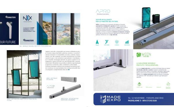APRO è progettato per rispondere all’ esigenza di rendere automatiche e intelligenti le aperture di edifici residenziali, commerciali e industriali, valorizzando il design delle moderne architetture grazie a una gamma di accessori in grado di trasformare qualsiasi finestra o porta in un elemento di domotica integrato. La linea è composta da attuatori sovrapposti o integrati completati da sistemi di chiusura e dispositivi di controllo tramite gateway interfacciati con un’ app dedicata.