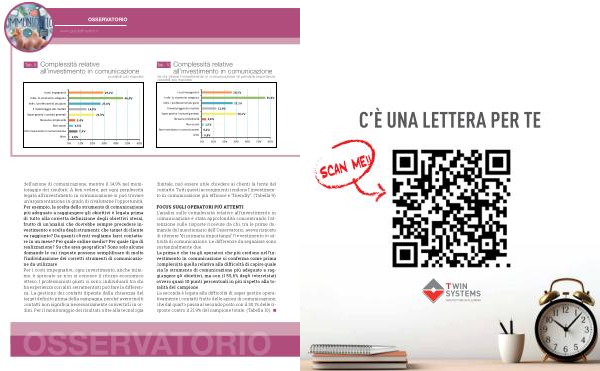 FOCUS SUGLI OPERATORI PIÙ ATTENTI L’ analisi sulle complessità relative all’ investimento in comunicazione è stata approfondita concentrando l’ attenzione sulle risposte ricevute da chi, tra le prime domande del questionario dell’ Osservatorio, aveva risposto di ritenere“ di primaria importanza” l’ investimento in attività di comunicazione. Le differenze da segnalare sono sostanzialmente due. La prima è che tra gli operatori che più credono nell’ investimento in comunicazione si conferma come prima complessità quella relativa alla difficoltà di capire quale sia lo strumento di comunicazione più adeguato a raggiungere gli obiettivi, ma con il 55,6 % degli intervistati ovvero quasi 10 punti percentuali in più rispetto alla totalità del campione. La seconda è legata alla difficoltà di saper gestire operativamente i contatti frutto delle azioni di comunicazione, che dal quarto passa al secondo posto con il 30,1 % delle risposte contro il 21,9 % del campione totale.( Tabella 10).