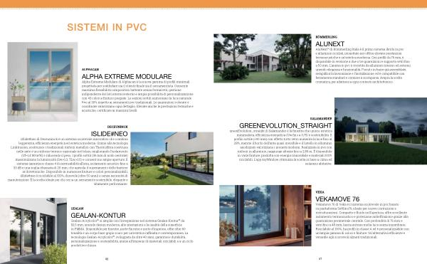 GREENEVOLUTION _ STRAIGHT greenEvolution _ straight di Salamander è la finestra che unisce estetica minimalista, efficienza energetica( Uw fino a 0,75) e sostenibilità. Il profilo sottile(< 90 mm) con effetto tutto vetro aumenta la luce fino al 28 %, mentre il bordo dell’ anta quasi invisibile e il listello in alluminio anodizzato valorizzano i progetti moderni. Realizzata in pvc con rinforzi in alluminio, raggiunge altezze fino a 2,80 m. È disponibile in varie finiture, prodotta con energia rinnovabile e materiali 100 % riciclabili. L’ app myWindow ottimizza la scelta in base a clima ed esigenze abitative.