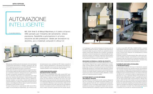 Nel panorama dell’ industria del serramento, dove innovazione e automazione determinano il vantaggio competitivo, MC 304 Ariel-5 rappresenta la risposta concreta di Mecal Machinery alle esigenze di flessibilità, precisione e produttività. Questo centro di lavoro a controllo numerico incarna l’ evoluzione tecnologica applicata alla lavorazione di profili in alluminio, pvc e materiali compositi, distinguendosi per configurazioni versatili e una gestione avanzata dei cicli produttivi. Tra i suoi elementi chiave spicca la trasmissione dati in fibra ottica, che consente velocità elevate e totale assenza di interferenze, assicurando stabilità operativa anche in ambienti industriali complessi. La macchina si integra perfettamente nei contesti produttivi 4.0, grazie a componenti meccanici d’ eccellenza e a un’ intelligenza software capace di gestire lavorazioni complesse in modo intuitivo e sicuro. Un punto di forza tecnico è rappresentato dalle morse di bloccaggio con motorizzazione indipendente, che scorrono su guide di precisione e sono controllate da CNC. Questo consente di ridurre i tempi di piazzamento e velocizzare la lavorazione. In versione opzionale, le morse possono riposizionarsi automaticamente durante il ciclo, ottimizzando ogni passaggio.
