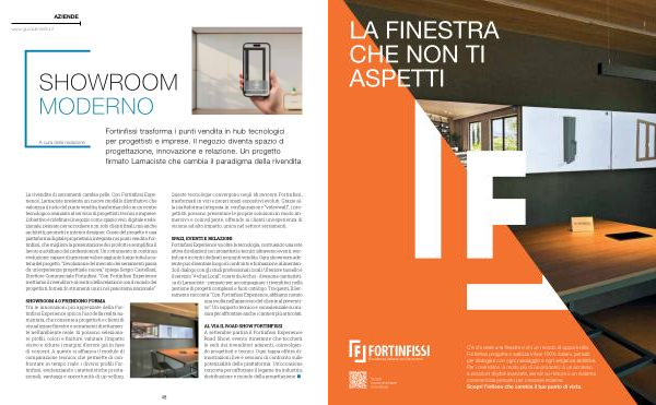AL VIA IL ROAD SHOW FORTINFISSI A settembre partirà il Fortinfissi Experience Road Show, evento itinerante che toccherà le sedi dei rivenditori aderenti, coinvolgendo progettisti e tecnici. Ogni tappa offrirà dimostrazioni live e sessioni di confronto sulle potenzialità della piattaforma. Un’ occasione concreta per rafforzare il legame tra industria, distribuzione e mondo della progettazione.