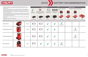 • While ALL NURON batteries are compatible with ALL NURON tools, Hilti recommends specific batteries to be sold with each tool because they offer the best balance of performance, run time and weight for each tool.*
