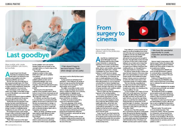24 | nursingreview . com . au but the palliative care room and the furniture inside was not meant for two overnight visitors , so I had to sleep on the floor ,” he said .