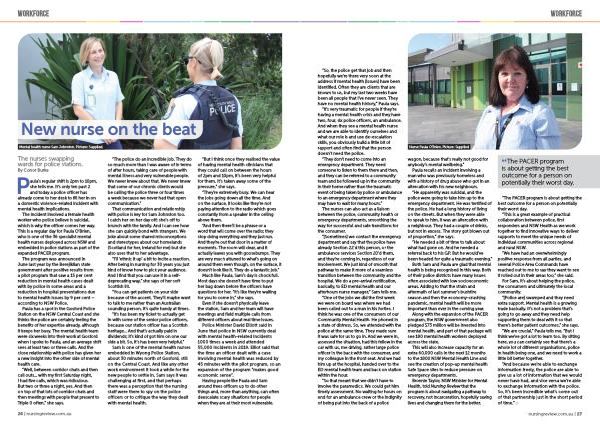 “ And because we ’ re able to exchange information freely , the police are able to give us a lot of information that we would never have had , and vice versa we ’ re able to exchange information with the police . So , it ’ s been incredible what ’ s come out of that partnership just in the short period of time .” ■ nursingreview . com . au | 27