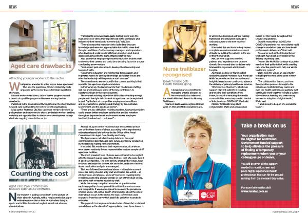 Published in the International Nursing Review , the study involved 32 aged care staff working for not-for-profit organisations .