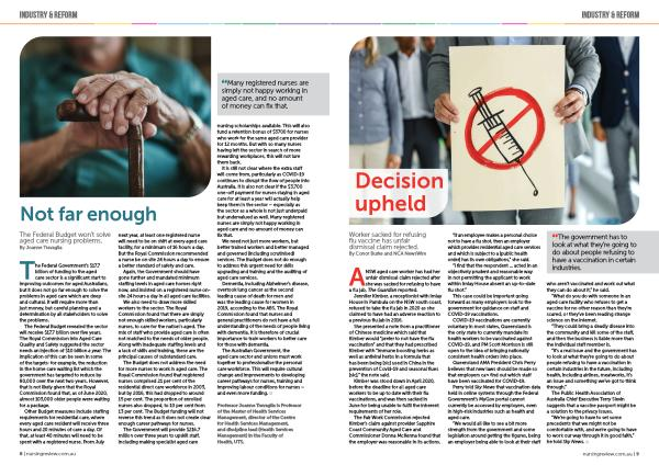 It is still not clear where the extra staff will come from , particularly as COVID-19 continues to disrupt the flow of people into Australia . It is also not clear if the $ 3,700 one-off payment for nurses staying in aged care for at least a year will actually help keep them in the sector – especially as the sector as a whole is not just underpaid but undervalued as well . Many registered nurses are simply not happy working in aged care and no amount of money can fix that .