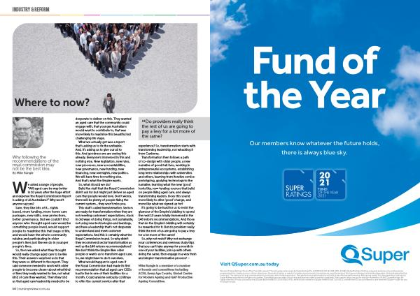 Winner of SuperRatings ’ Fund of the Year 2021 award . The rating / award is issued by SuperRatings Pty Ltd ABN 95 100 192 283 AFSL 311880 ( SuperRatings ). Ratings are general advice only and have been prepared without taking account of your objectives , financial situation or needs . Consider your personal circumstances , read the product disclosure statement and seek independent financial advice before investing . The rating is not a recommendation to purchase , sell or hold any product . Past performance information is not indicative of future performance . Ratings are subject to change without notice and SuperRatings assumes no obligation to update . SuperRatings uses objective criteria and receives a fee for publishing awards . Visit superratings . com . au for ratings information . © 2021 SuperRatings . All rights reserved . Product issued by the QSuper Board ( ABN 32 125 059 006 , AFSL 489650 ) as trustee for QSuper ( ABN 60 905 115 063 ). Consider the PDS on our website to see whether QSuper is right for you . © QSuper Board .