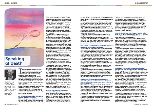 Many of the health professionals said that while they’ re okay saying‘ dead’ or‘ died’ in general conversation to each other and quite often to some families, they would be guided by the person they were talking to, and that was a recurring theme. You have to judge the conversation that you’ re having and how it’ s being received, and what the language is that the person you’ re talking to is using.