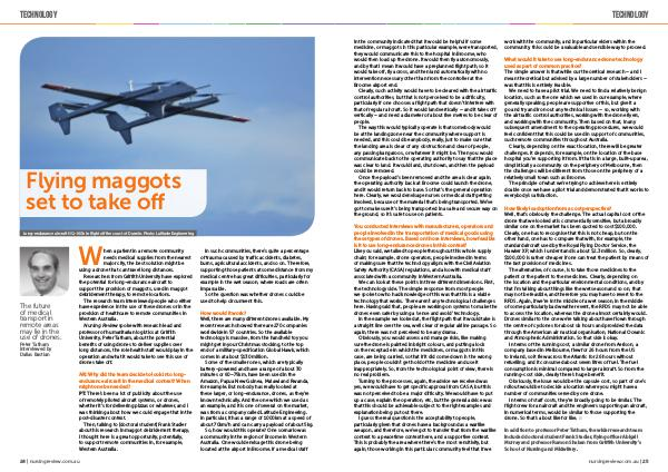 Obviously, you would assess and manage risks, like making sure the drone is painted in bright colours, and putting a lock on the receptacle in which the medicines, or maggots in this case, are being carried, so that if it did come down in the wrong place, people couldn’ t get hold of the medicine and use it inappropriately. So, from the technological point of view, there is no real problem.