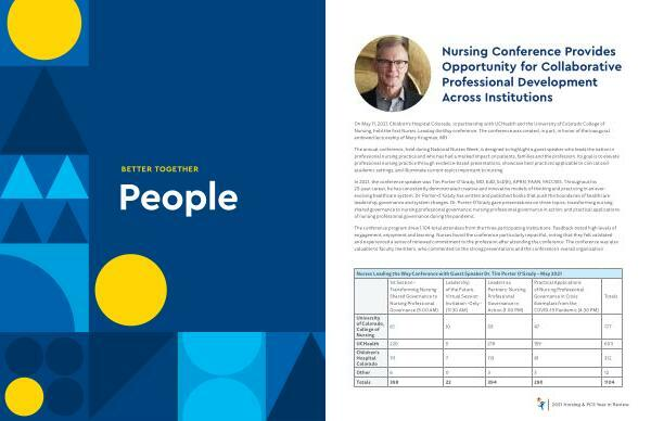 On May 11 , 2021 , Children ’ s Hospital Colorado , in partnership with UCHealth and the University of Colorado College of Nursing , held the first Nurses : Leading the Way conference . The conference was created , in part , in honor of the inaugural endowed lectureship of Mary Krugman , MD .