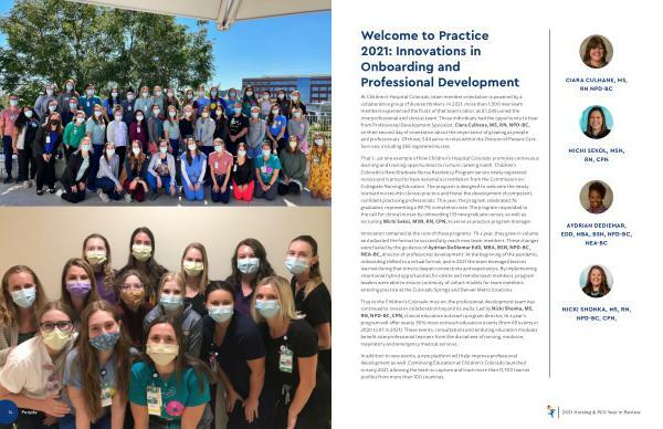 That ’ s just one example of how Children ’ s Hospital Colorado promotes continuous learning and training opportunities to nurture career growth . Children ’ s Colorado ’ s New Graduate Nurse Residency Program serves newly registered nurses and is proud to have national accreditation from the Commission on Collegiate Nursing Education . The program is designed to welcome the newly licensed nurses into clinical practice and foster the development of competent , confident practicing professionals . This year , the program celebrated 76 graduates , representing a 98.7 % completion rate . The program responded to the call for clinical nurses by onboarding 133 new graduate nurses , as well as recruiting Michi Sekol , MSN , RN , CPN , to serve as practice program manager .