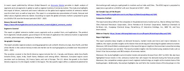 A recent report published by Infinium Global Research on Ammonia Market provides in depth analysis of