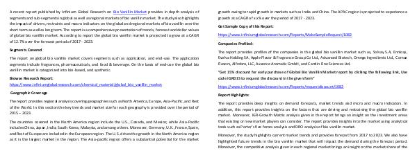 A recent report published by Infinium Global Research on Bio Vanillin Market provides in depth analysis of