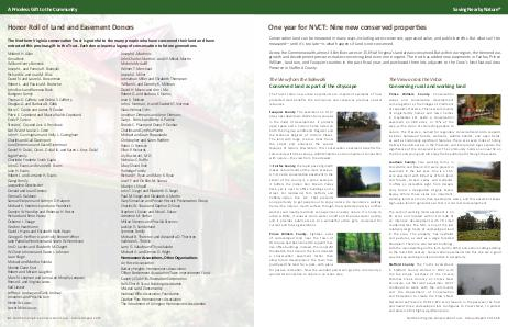 growth and development pressures makes conserving land even more urgent. The trust has added new easements in Fairfax, Prince