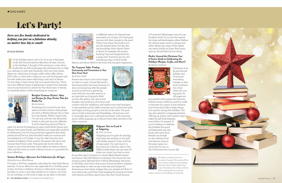 Elin Woods is a librarian from the mountains of western Pennsylvania. When she ' s not busy reading, she enjoys baking historical treats and exploring the East Coast. She balances her mostly nonfiction history reading with the occasional modern romance novel and plenty of cookbooks. nwgeorgialiving. com | 9